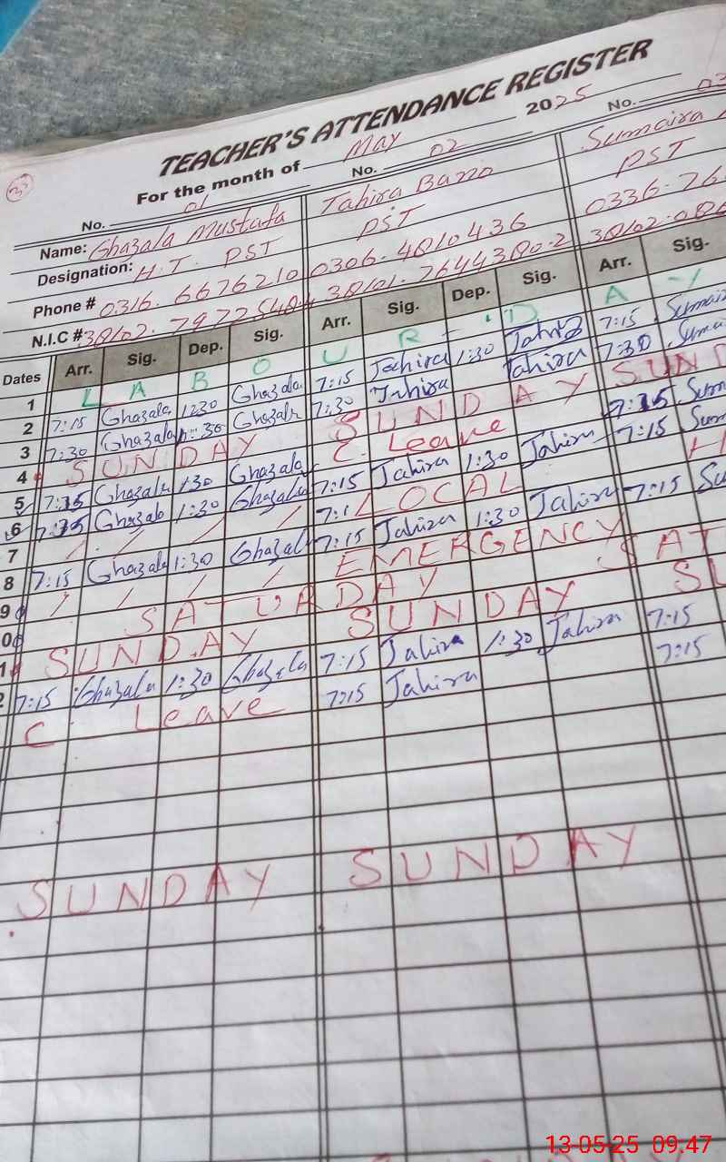 | Name: Gh**** Mu**** Designation: (School Headmaster's/Headmistress's) PST Phone/Cell Number: 03**** |