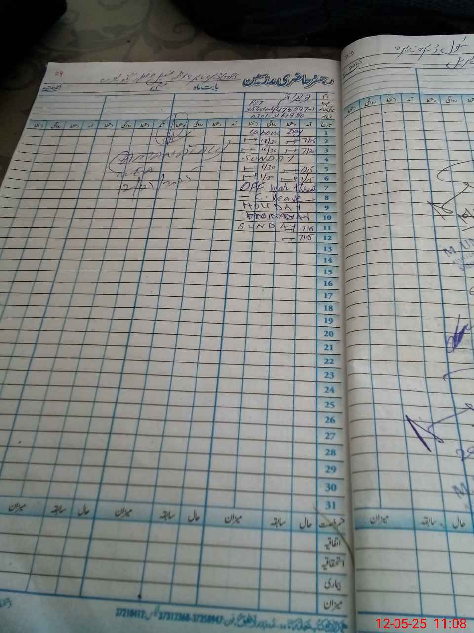 | CNIC | Full Name | Designation | R/C | Absence During Last Calender Month |