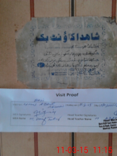 | Attendance Register | Head Teacher | MEA with School | Visit Proof |