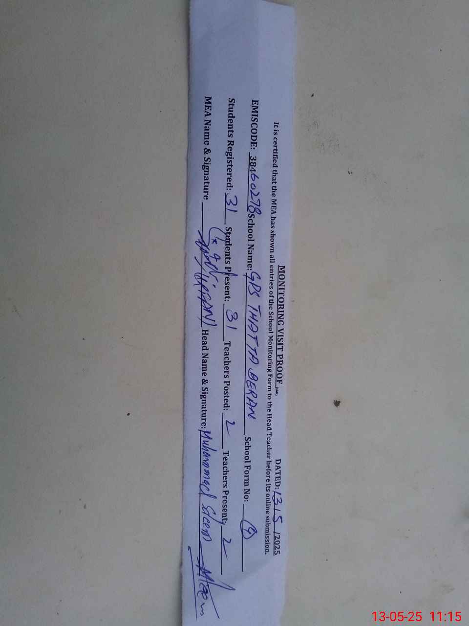 | EMIS Code: 38460278 | Name of School: GPS THATTA BERAN | |||
