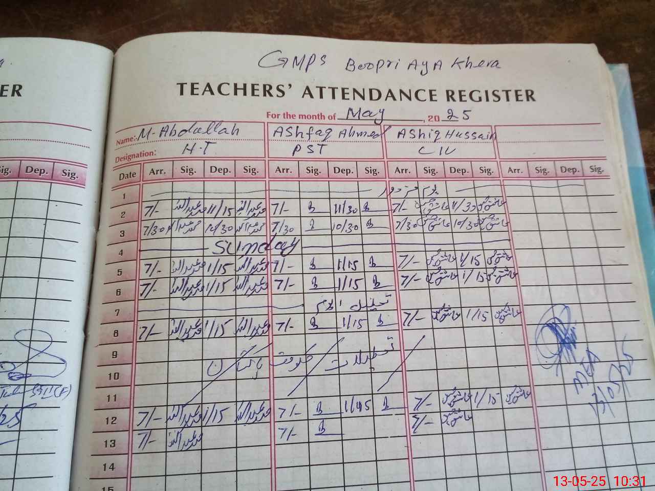 | Name: MAb**** Designation: (School Headmaster's/Headmistress's) PST Phone/Cell Number: 03**** |