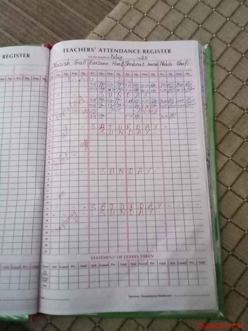 | Leave | Duty | Absent | Maternity | Medical | Ex- Pak |