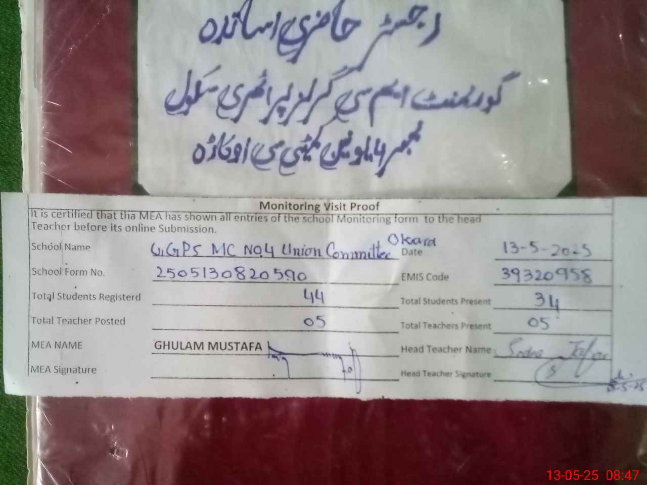 | EMIS Code: 39320958 | Name of School: GGPS MC NO. 4 UNION COMMITTEE | |||