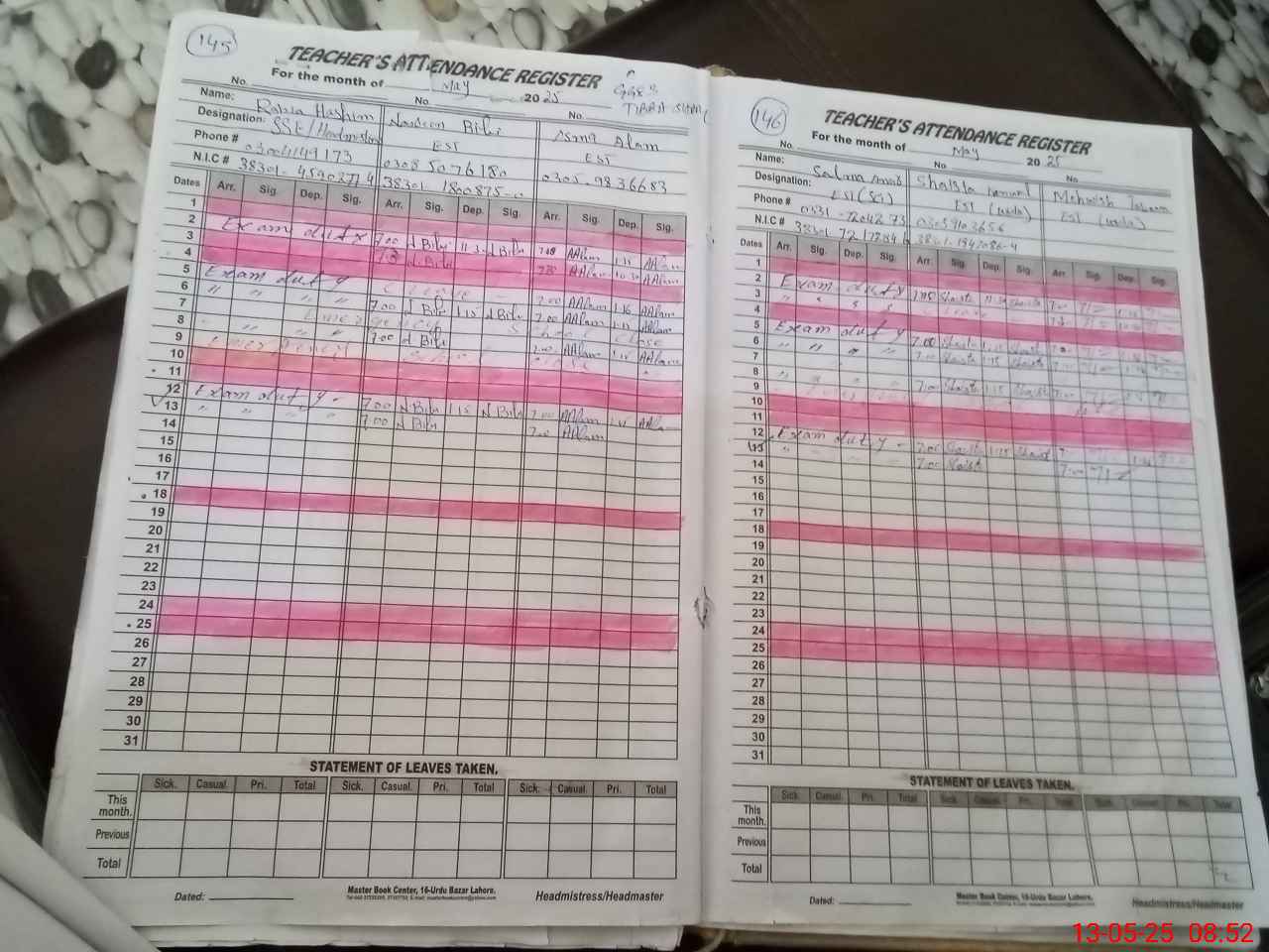 | 38**** | Ra**** Ha**** | Contract | 0 | 14 | 0 | 0 | 0 | 0 | 0 | 0 | 0 | Exam Duty | |