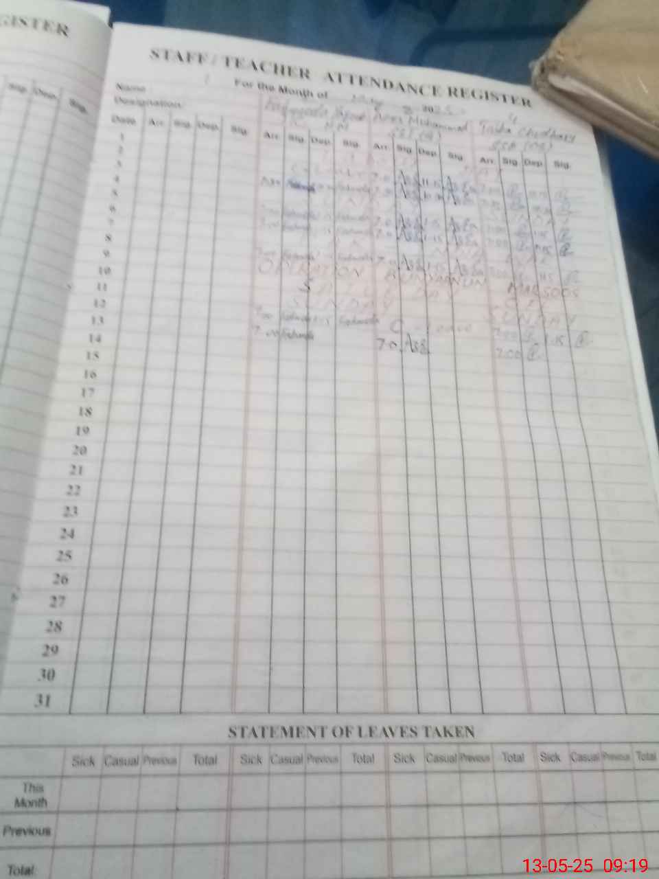 | CNIC | Full Name | Designation | R/C | Absence During Last Calender Month |
