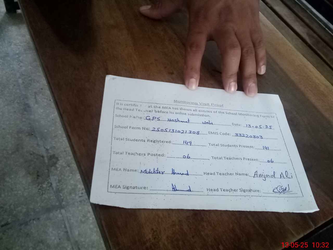 | EMIS Code: 33220303 | Name of School: GPS HASHMAT WALA | |||