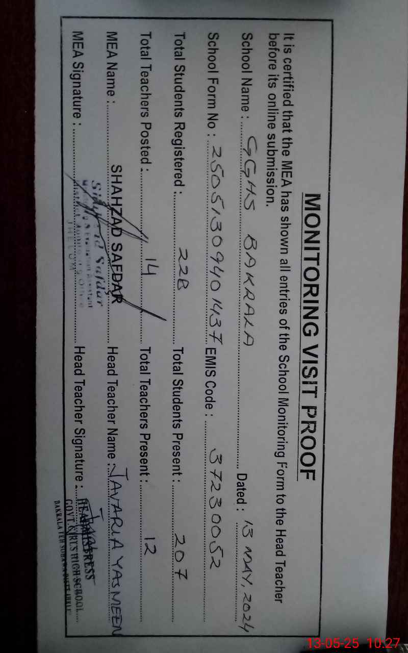 | EMIS Code: 37230052 | Name of School: GGHS BAKRALA | |||