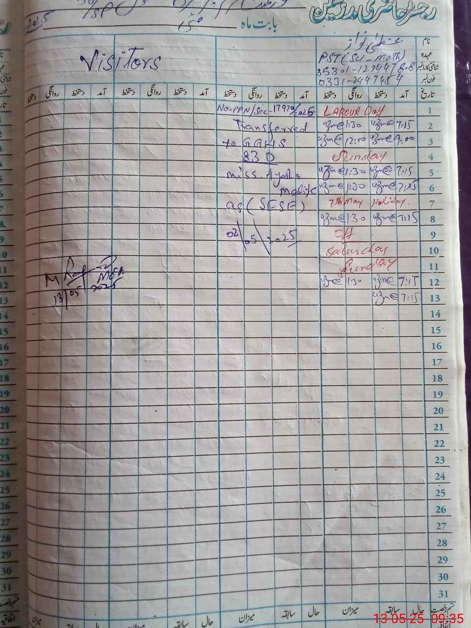 | Name: Uz**** Na**** Designation: (School Headmaster's/Headmistress's) PST Phone/Cell Number: 03**** |