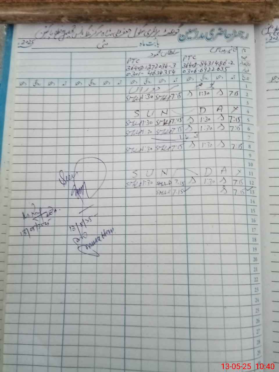 | CNIC | Full Name | Designation | R/C | Absence During Last Calender Month |