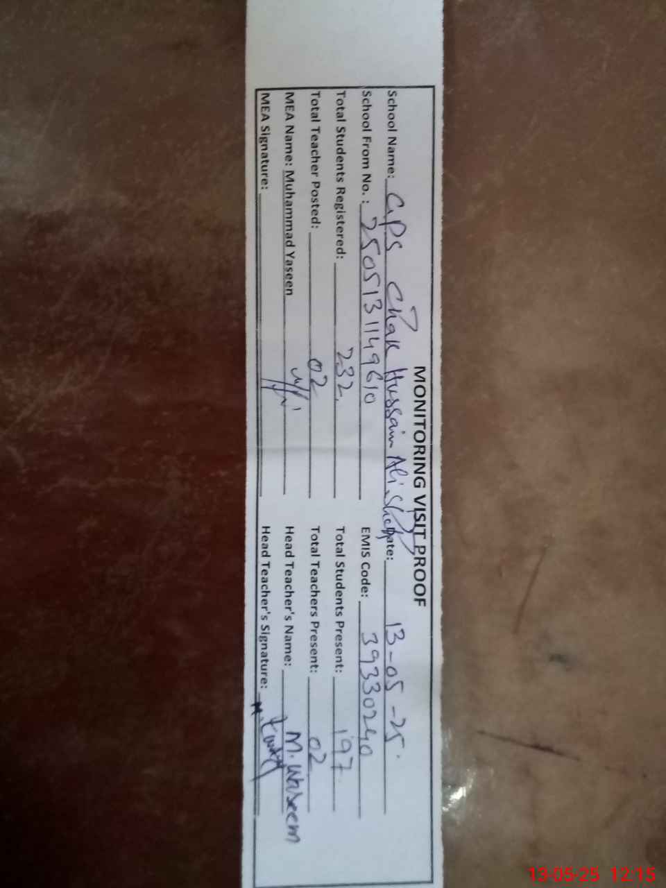 | EMIS Code: 39330240 | Name of School: GPS CHAK HUSSAIN ALI SHAH | |||