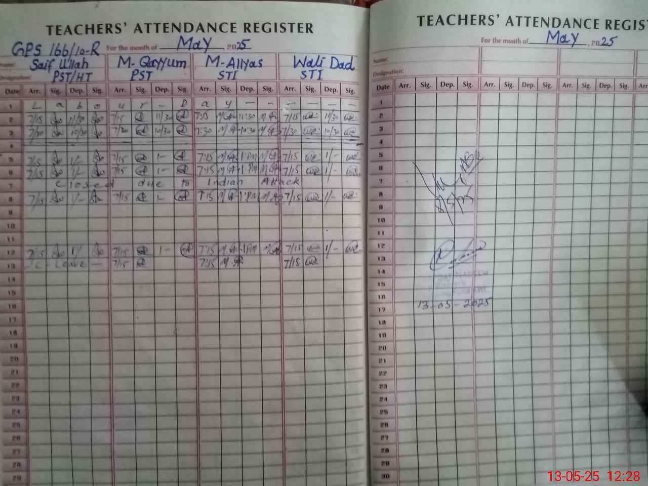 | CNIC | Full Name | Designation | R/C | Absence During Last Calender Month |