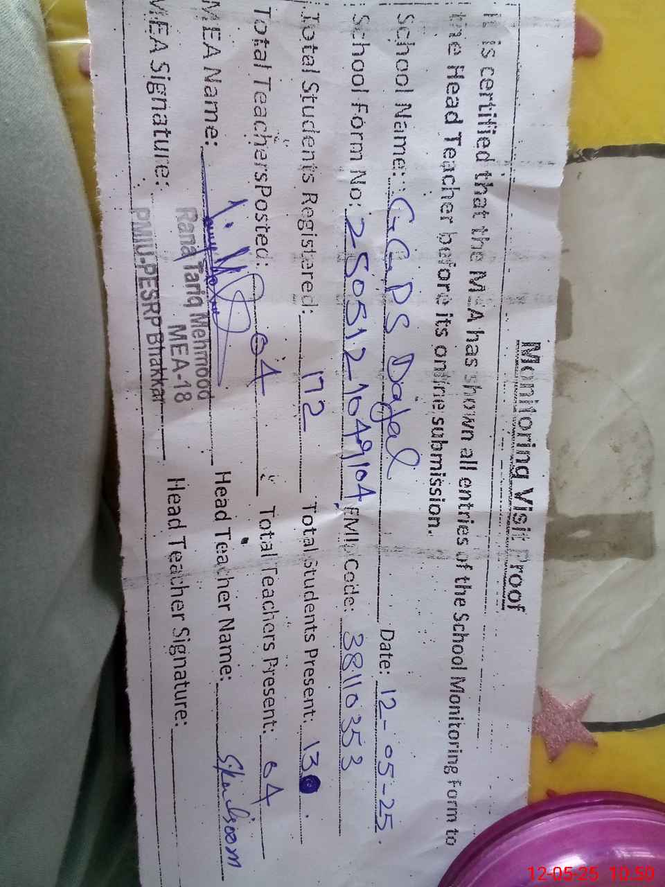 | EMIS Code: 38110353 | Name of School: GGPS DAJAL | |||