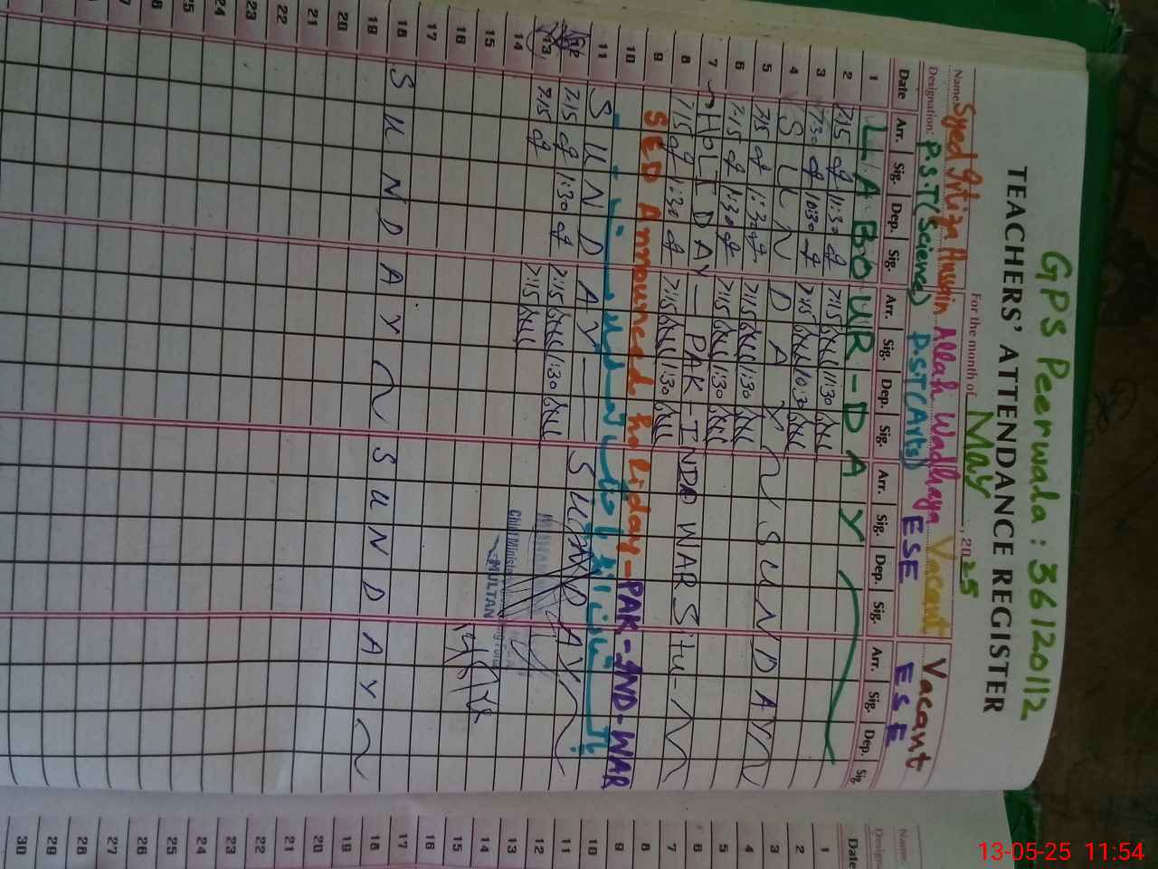 | EMIS Code: 36120112 | Name of School: GPS PEER WALA P/O THATH GHALWAN | |||