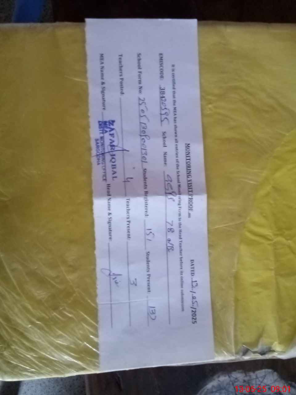 | EMIS Code: 38420595 | Name of School: GGPS CHAK NO.78 NB SARGODHA | |||