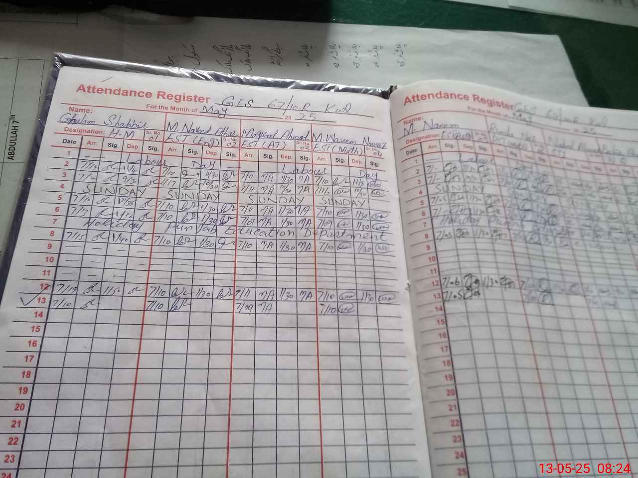 | CNIC | Full Name | Designation | R/C | Absence During Last Calender Month |