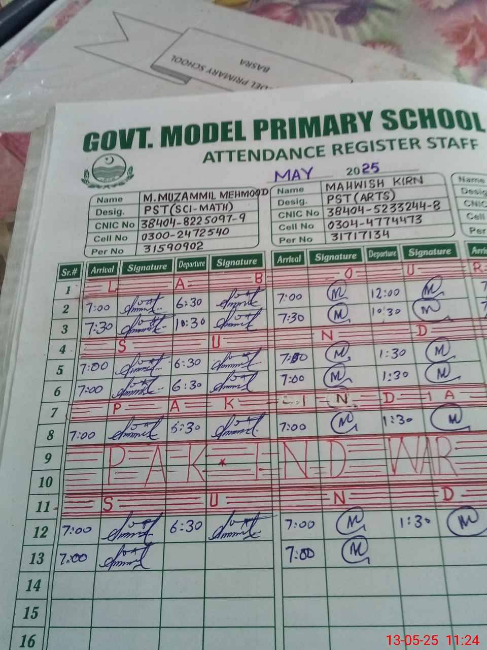 | Name: MU**** MU**** Designation: (School Headmaster's/Headmistress's) PST Phone/Cell Number: 03**** |