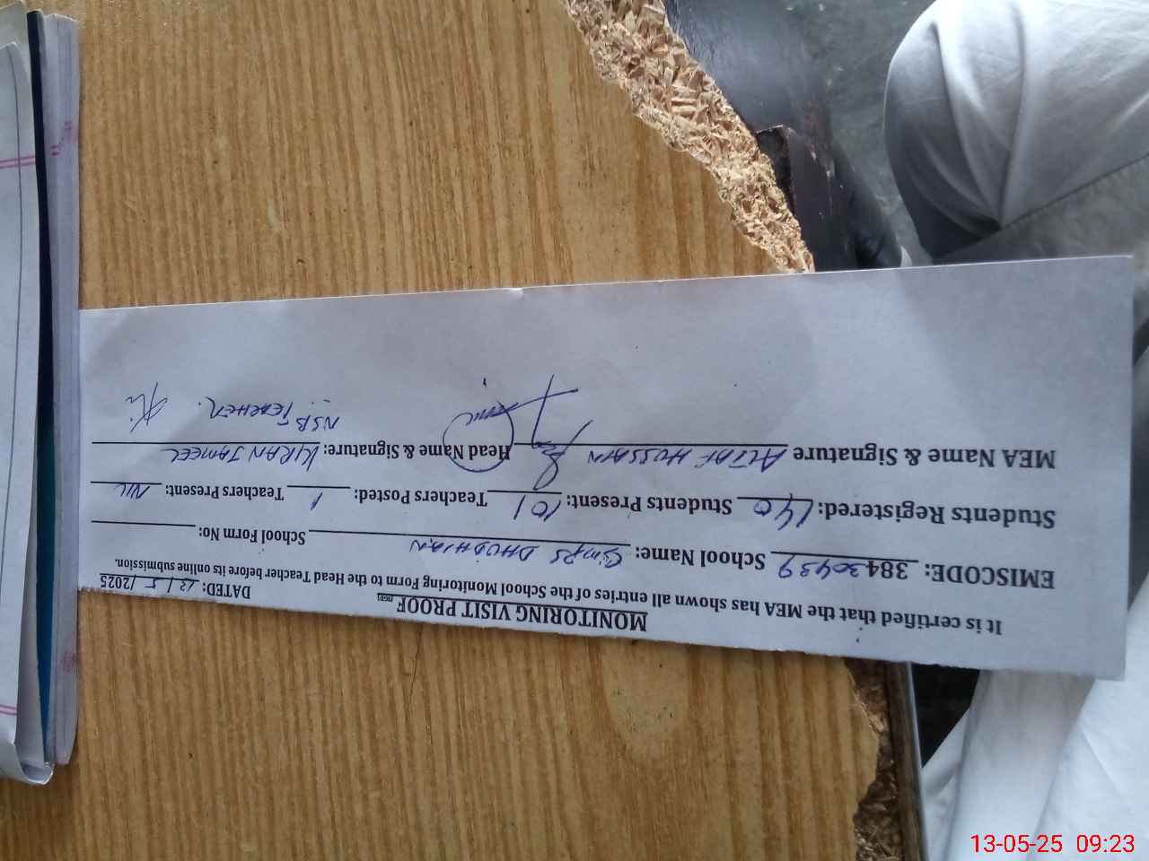 | EMIS Code: 38430439 | Name of School: GMPS DHUDIAN SHARIF | |||