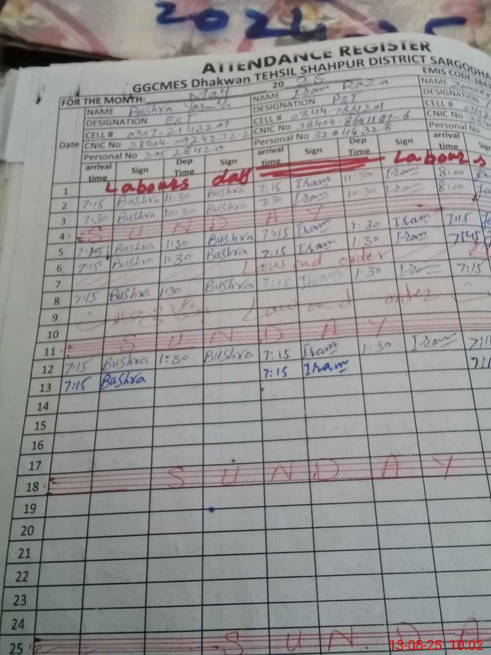 | CNIC | Full Name | Designation | R/C | Absence During Last Calender Month |