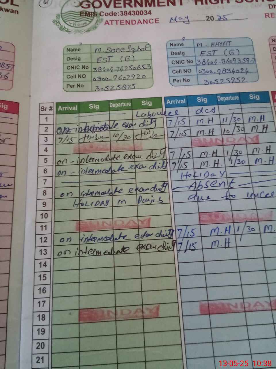 | 38**** | Mu**** Sa**** Iq**** | 1 | 2 | 0 | 0 | 0 | 0 | 0 | 0 | 0 | 2 | Exam Duty | |