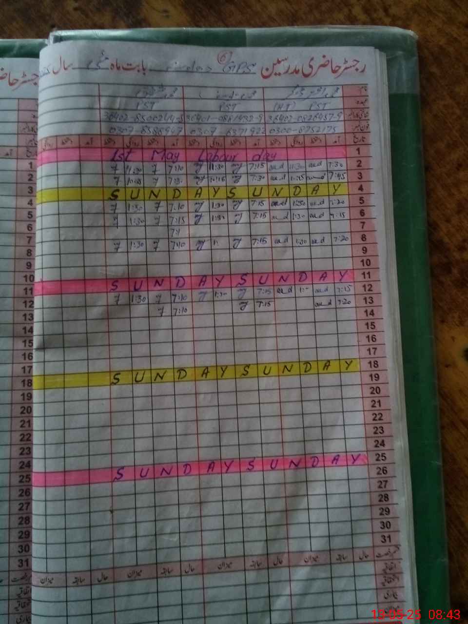 | CNIC | Full Name | Designation | R/C | Absence During Last Calender Month |