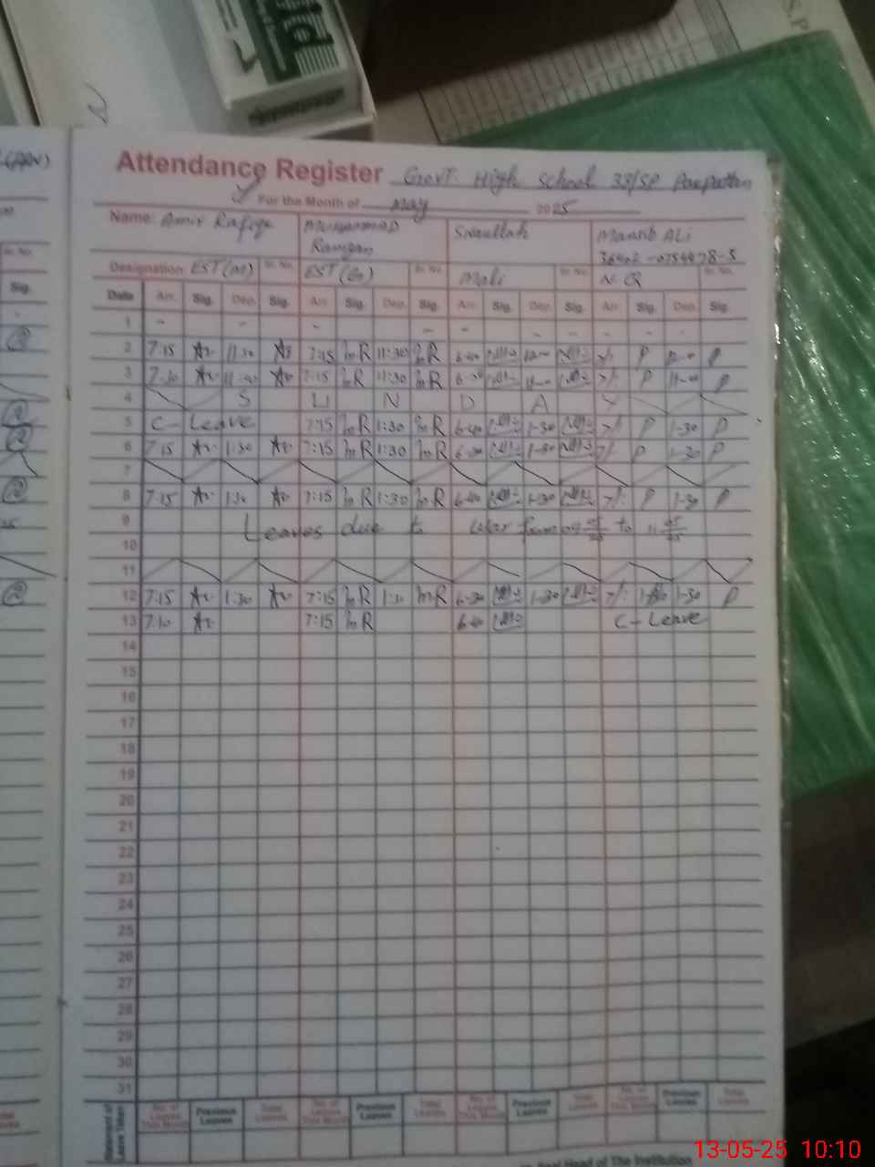 | 36**** | Ma**** Al**** | NAIB QASID | Regular | 0 | 0 | 0 | 0 | 0 | 0 | 0 | 0 | 0 | Casual |