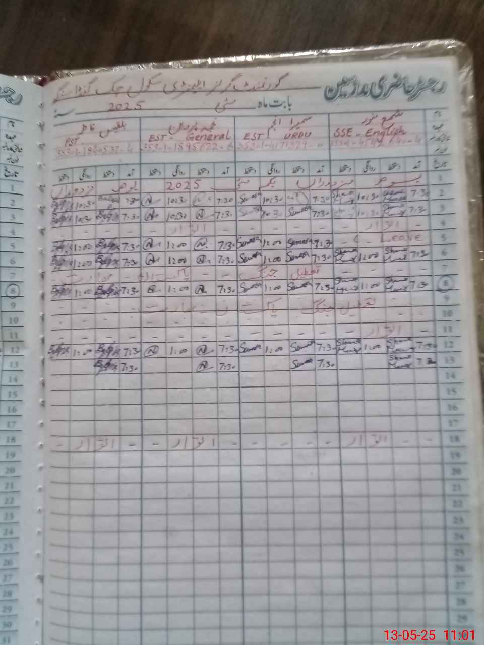 | Name: SH**** MU**** Designation: (School Headmaster's/Headmistress's) SSE ENG Phone/Cell Number: 03**** |