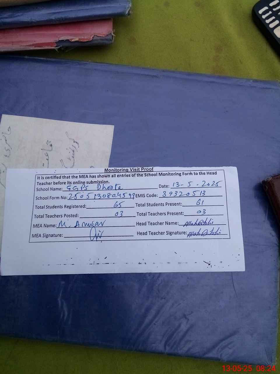 | EMIS Code: 39320513 | Name of School: GGPS DHOOTA | |||
