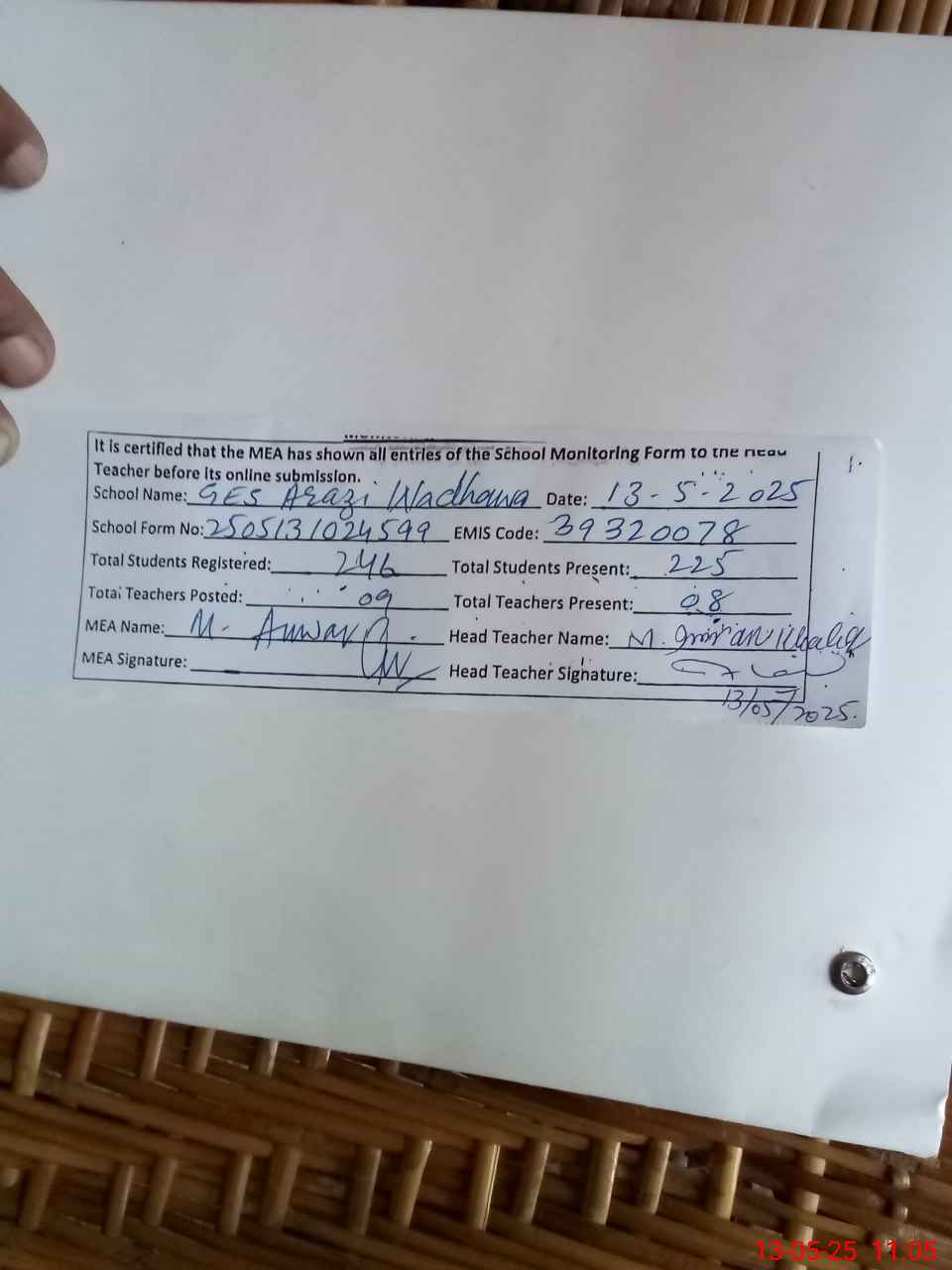 | EMIS Code: 39320078 | Name of School: GES ARAZI WADHAWA | |||