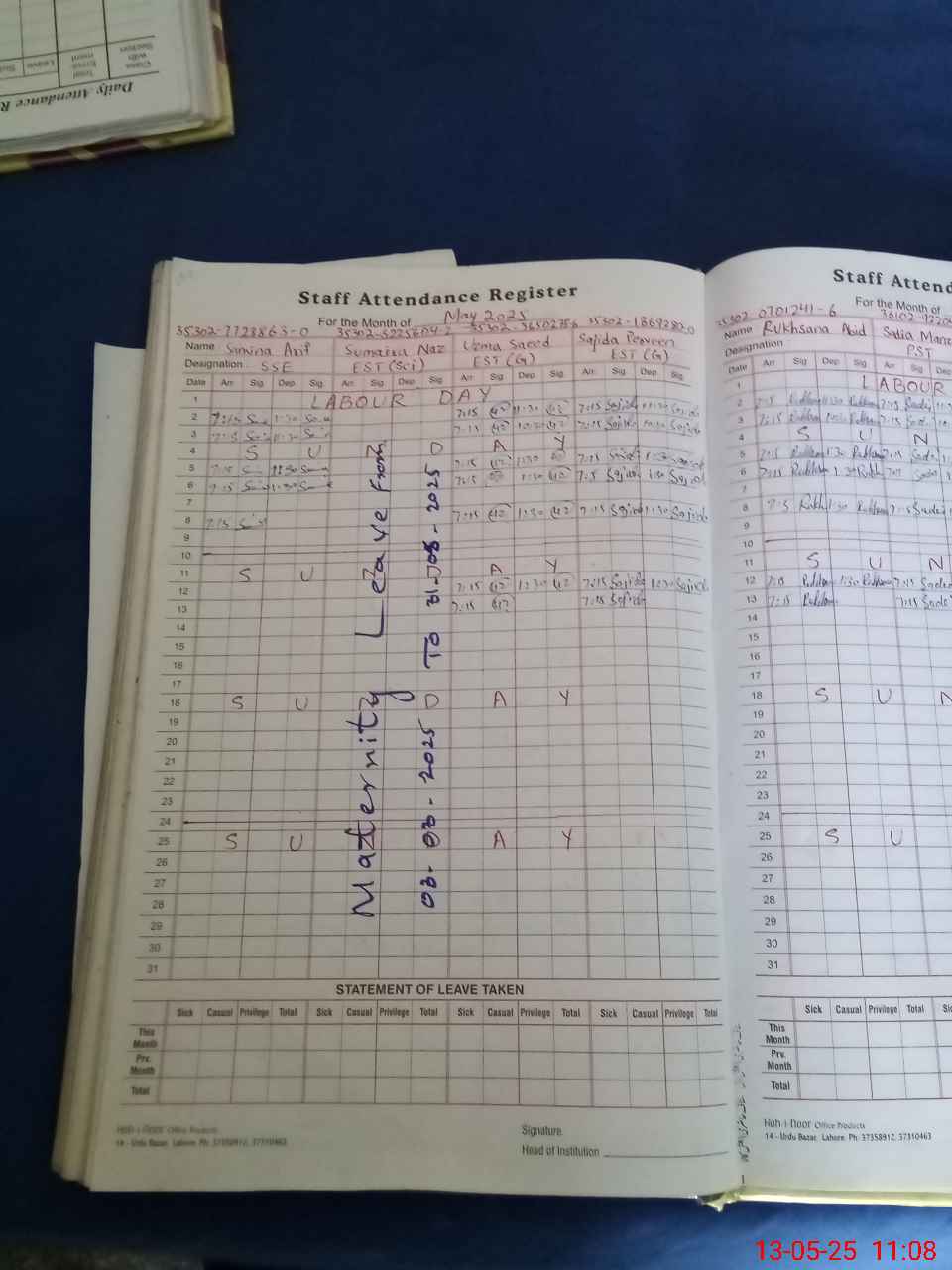 | 35**** | Su**** Na**** | Regular | 28 | 0 | 0 | 0 | 28 | 0 | 0 | 0 | 0 | Maternity | |
