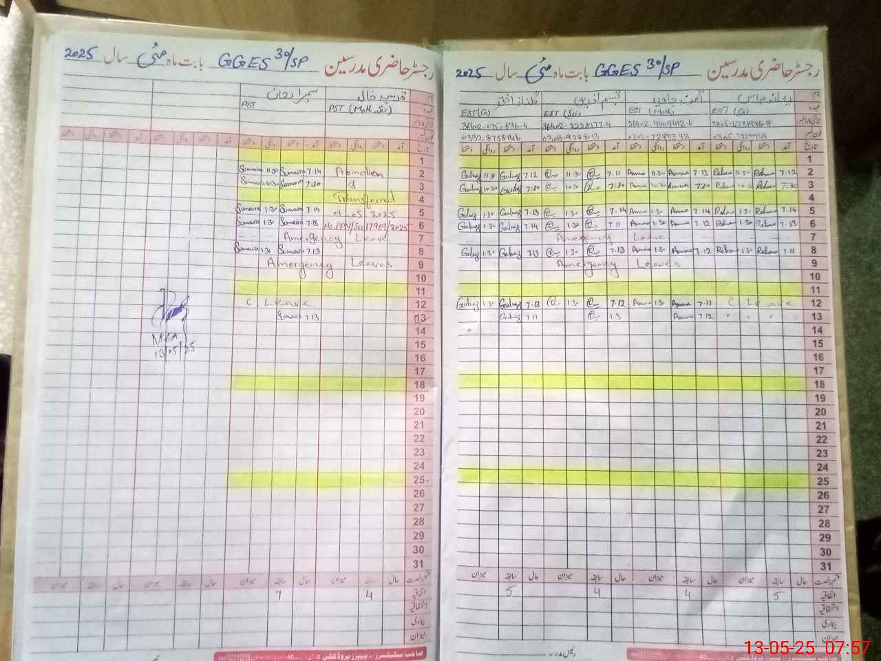 | CNIC | Full Name | Designation | R/C | Absence During Last Calender Month |