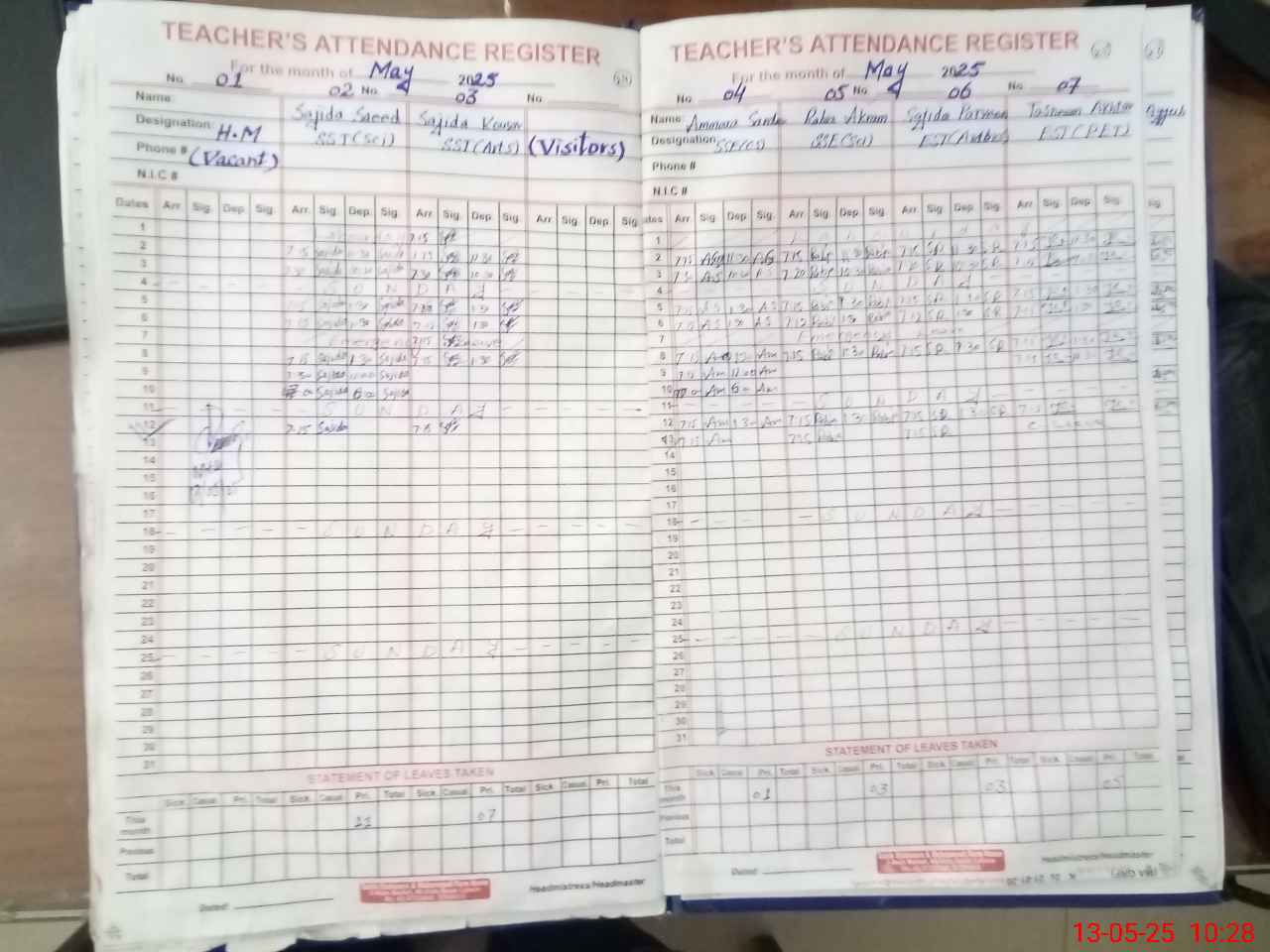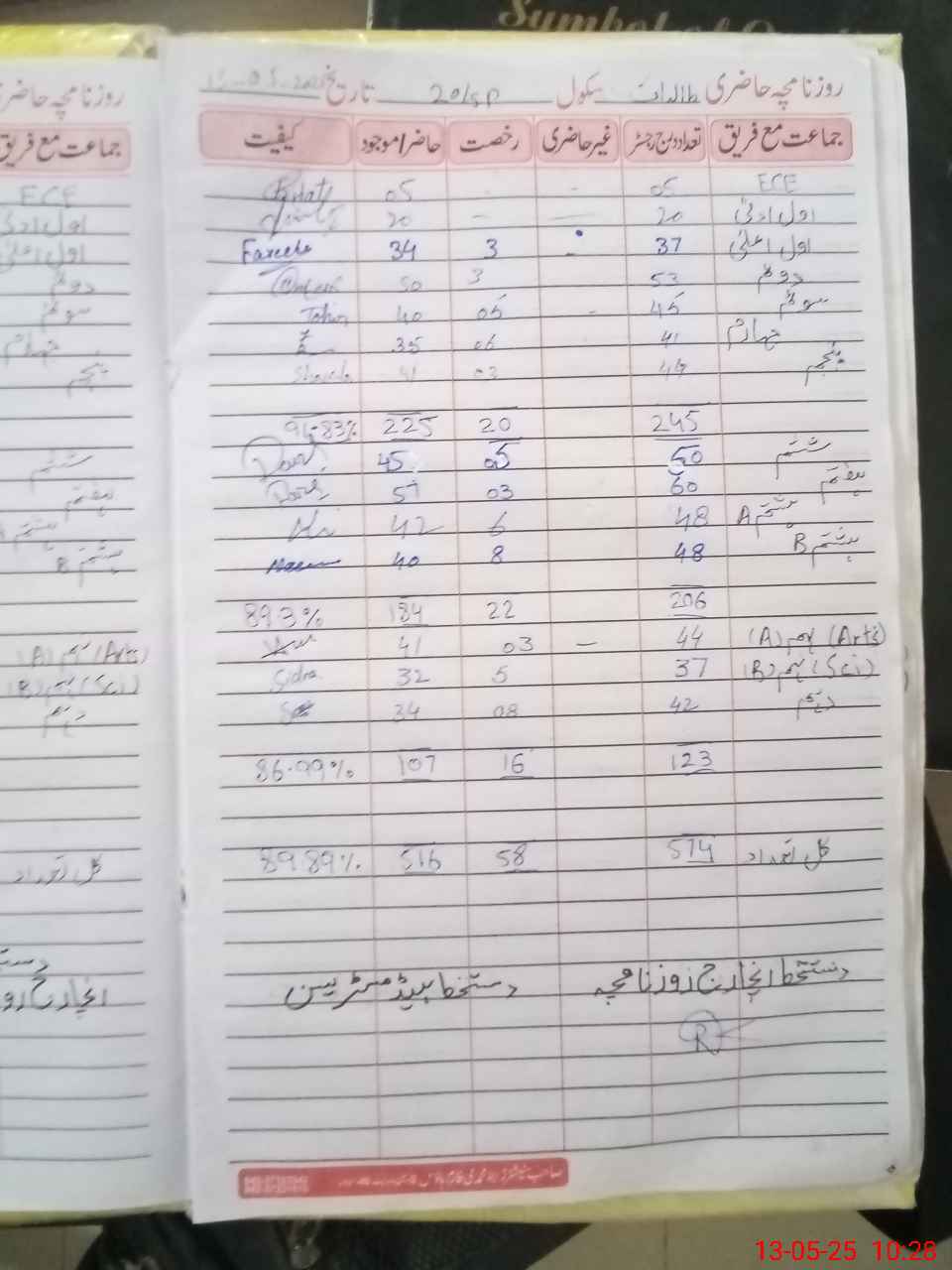 | Remarks (Use Separate Page if Required): Books record D 4 incomplt Sidra Munir sti present in this school | |||||