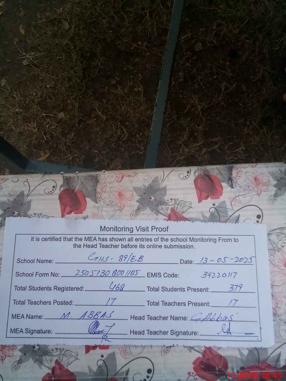 | EMIS Code: 39220117 | Name of School: GHS CHAK NO. 89 EB | |||