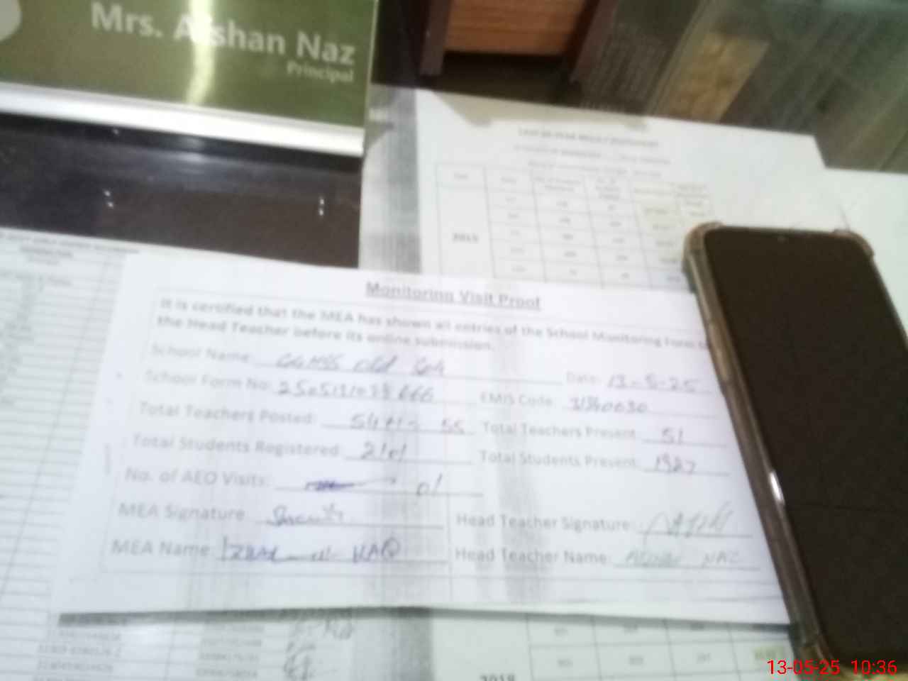 | Monitoring Date: 13-05-2025 | Start Time: 13-05-2025 09:29 AM | End Time: 13-05-2025 10:38 AM | Name of MEA: Mu**** Iz**** UlHa**** | |