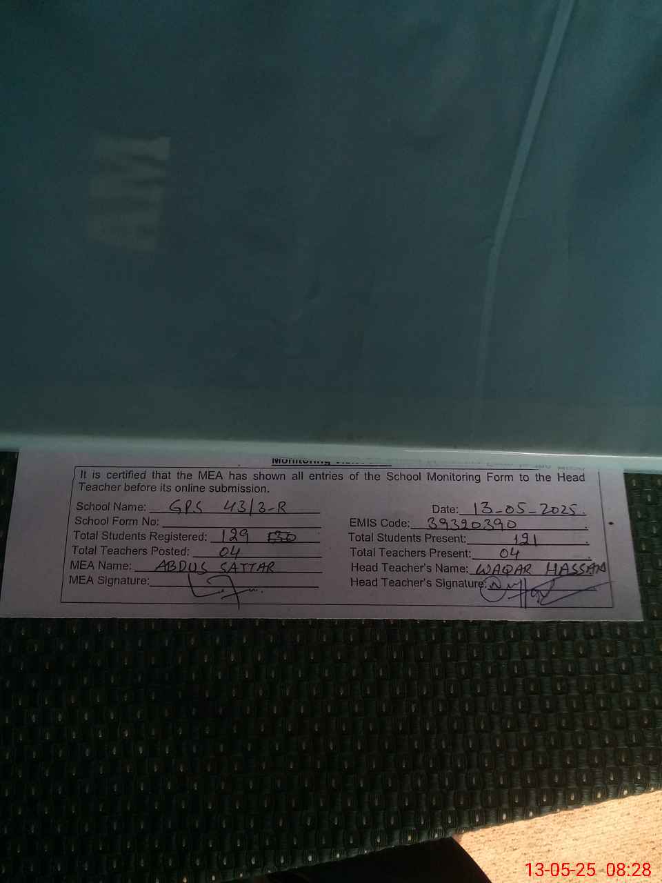 | Certified that this School was Inspected by the Undersigned MEA/DMO Today and the Information Stated Above is as Per Record. | |||||