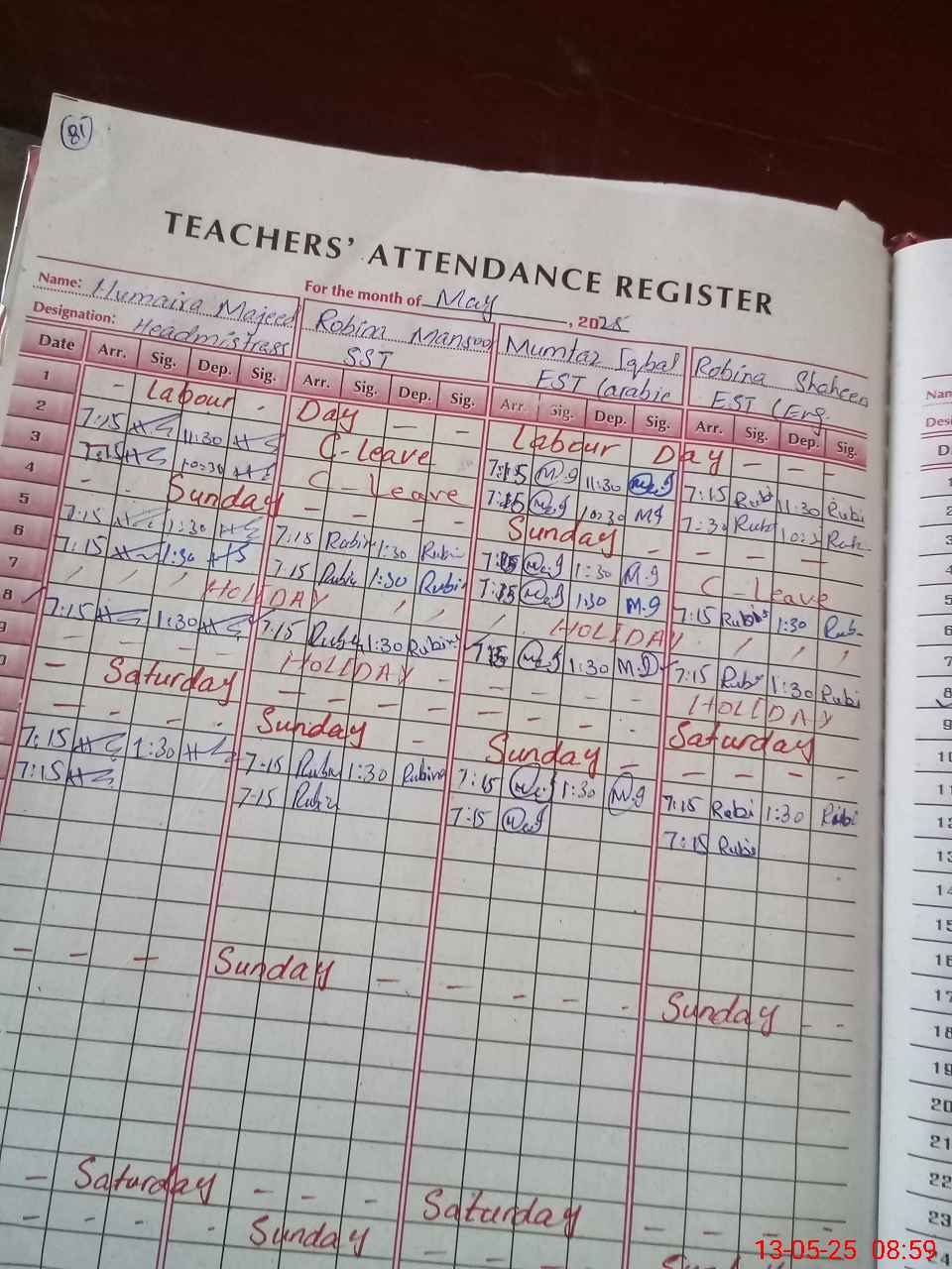 | Name: HU**** MA**** Designation: (School Headmaster's/Headmistress's) SST (SCI) Phone/Cell Number: 03**** |