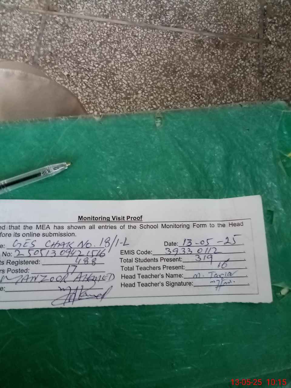 | EMIS Code: 39330112 | Name of School: GES CHAK 18/1-L | |||