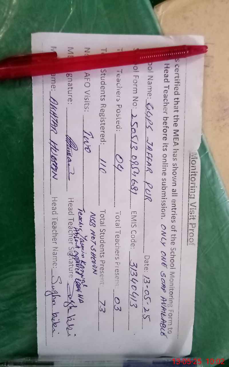 | EMIS Code: 31340413 | Name of School: GGPS JAFAR PUR | |||