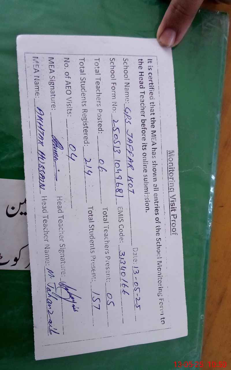 | EMIS Code: 31340166 | Name of School: GPS JAFAR KOT | |||