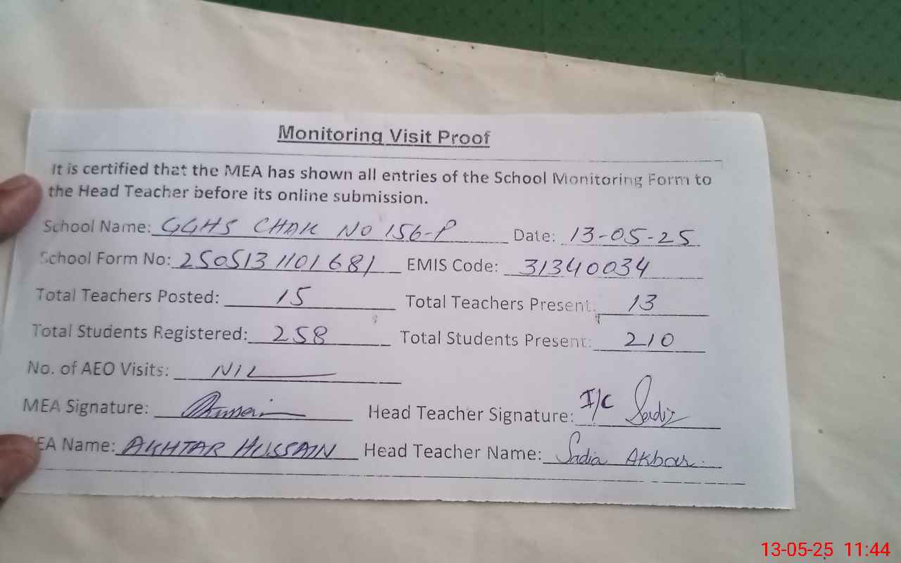 | EMIS Code: 31340034 | Name of School: GGHS CHAK NO. 156/P | |||