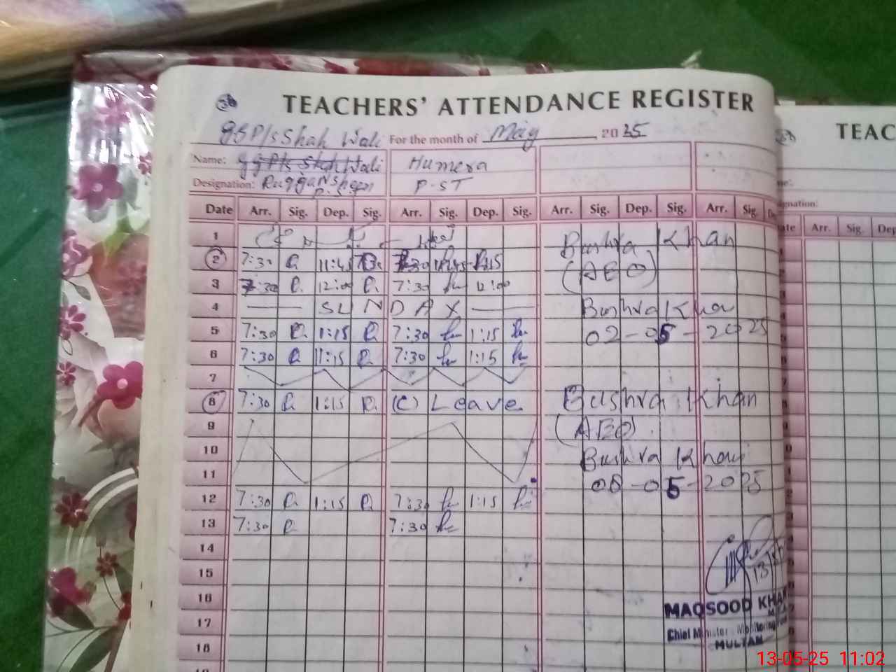 | Name: RU**** NO**** Designation: (School Headmaster's/Headmistress's) PST/PTC/JV Phone/Cell Number: 03**** |