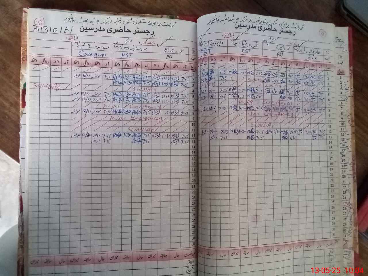 | CNIC | Full Name | Designation | R/C | Absence During Last Calender Month |