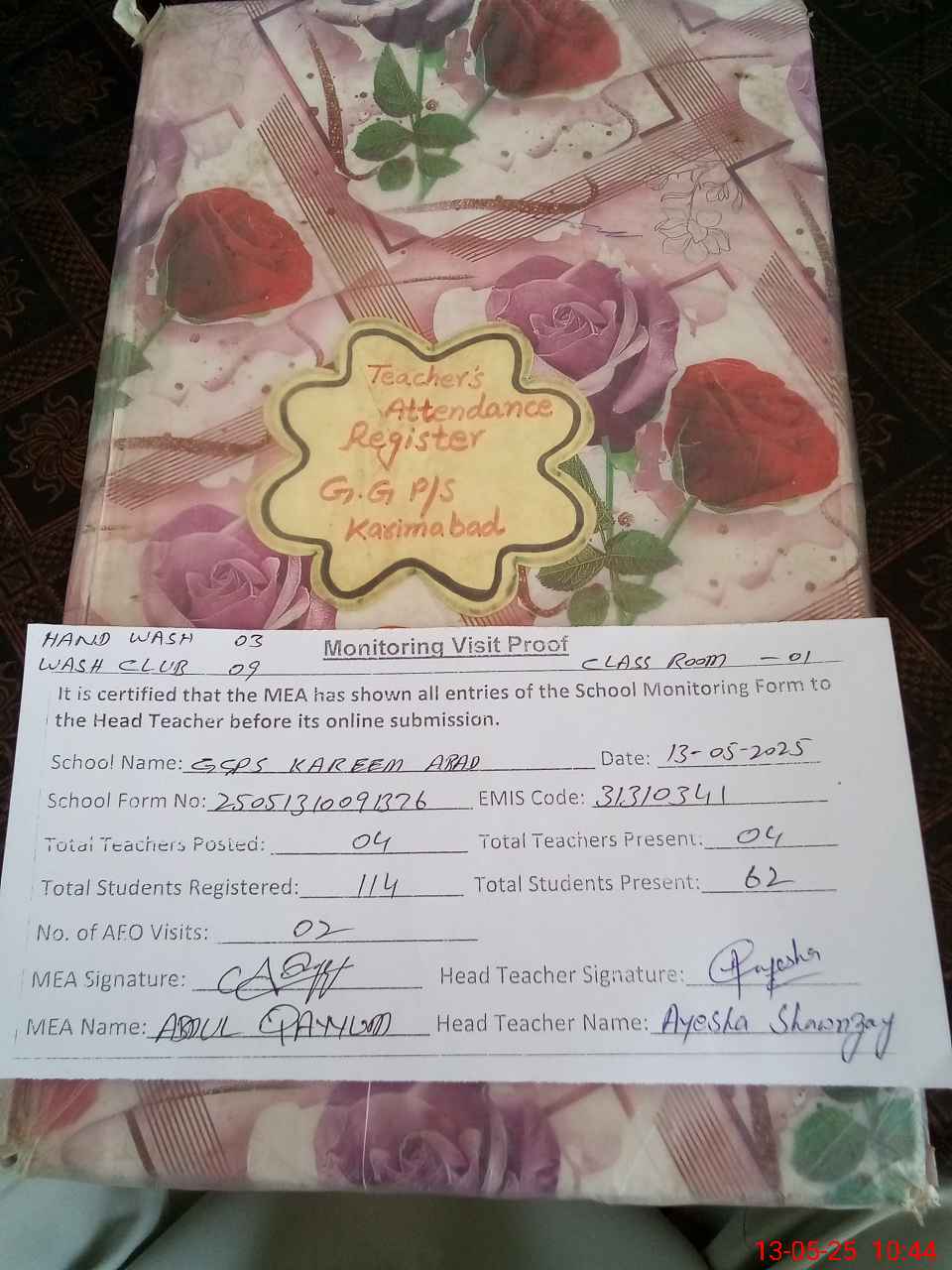 | EMIS Code: 31310341 | Name of School: GGPS KARIM ABAD | |||
