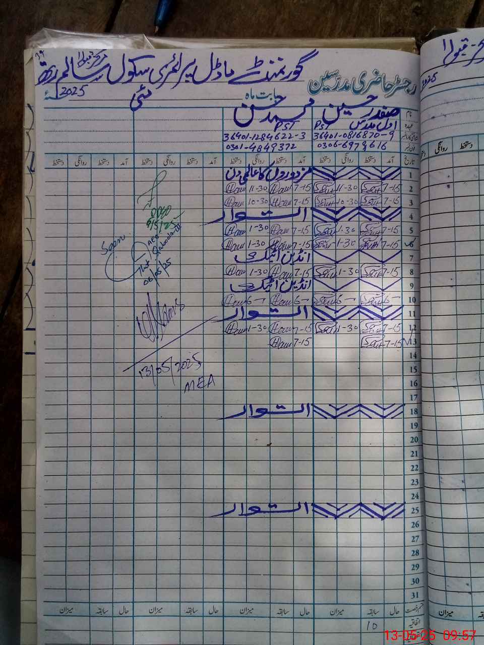 | Name: SA**** HU**** Designation: (School Headmaster's/Headmistress's) PST Phone/Cell Number: 03**** |