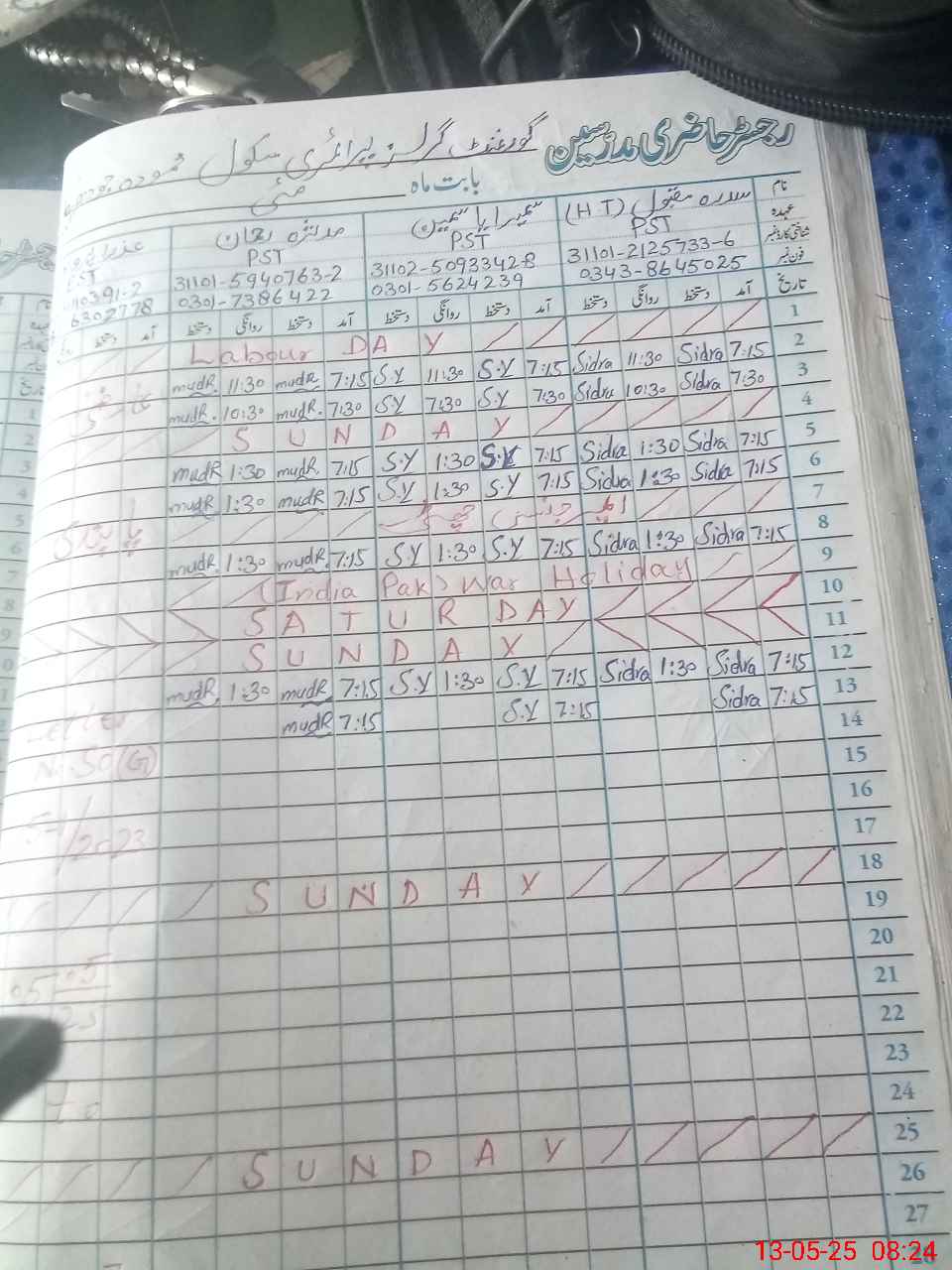 | 31**** | Az**** Pa**** | EST | Regular | 0 | 0 | 0 | 0 | 0 | 0 | 0 | 0 | 0 | Absent (Un-Authorized) |