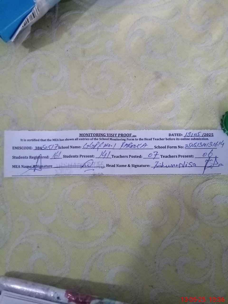 | EMIS Code: 38450517 | Name of School: GGPS NO.1 FAROOKA | |||