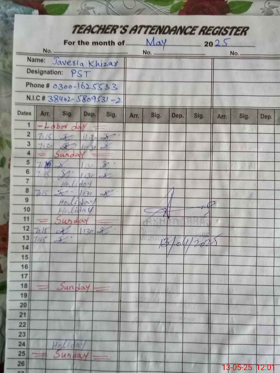 | Name: JA**** KH**** Designation: (School Headmaster's/Headmistress's) PST Phone/Cell Number: 03**** |
