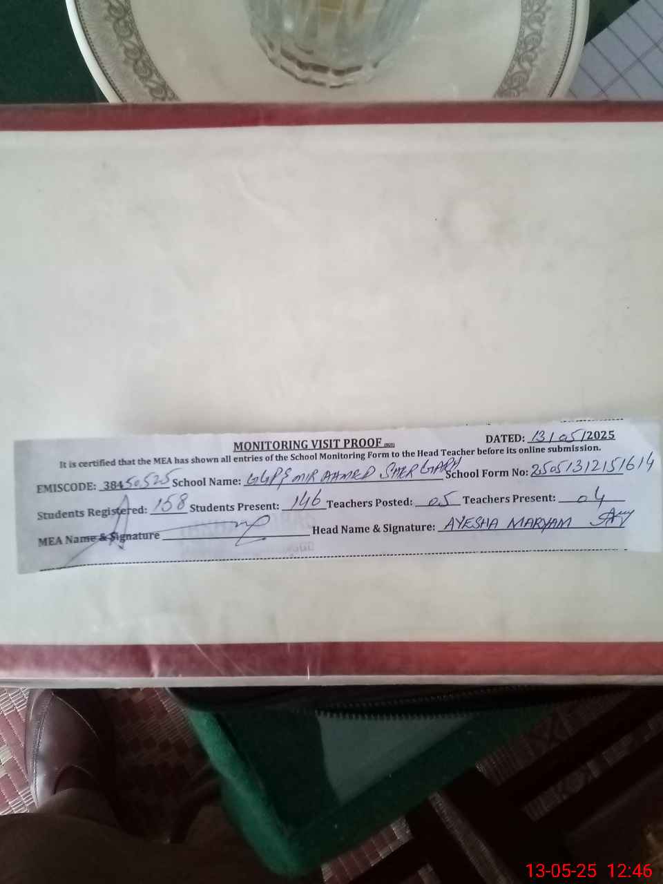| EMIS Code: 38450525 | Name of School: GGPS MIR AHMAD SHER GHARH | |||