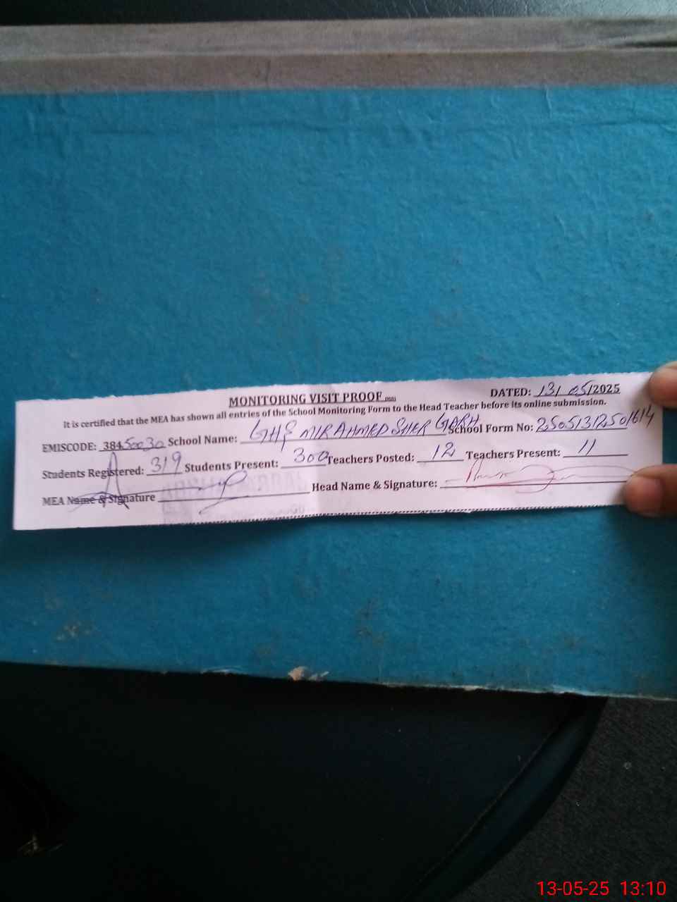 | Attendance Register | Head Teacher | MEA with School | Visit Proof |