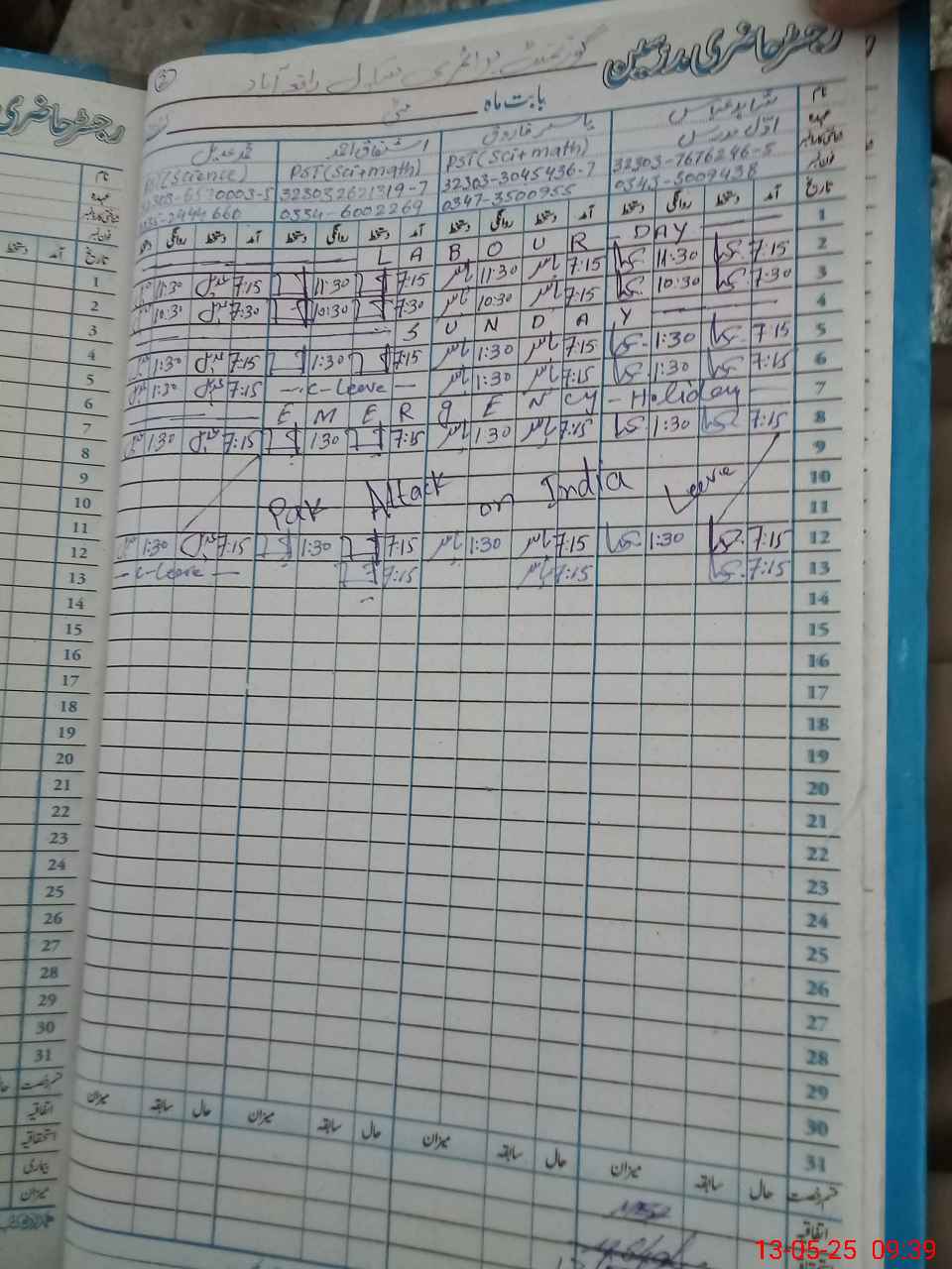 | Name: Sh**** Ab**** Designation: (School Headmaster's/Headmistress's) ESE Phone/Cell Number: 03**** |
