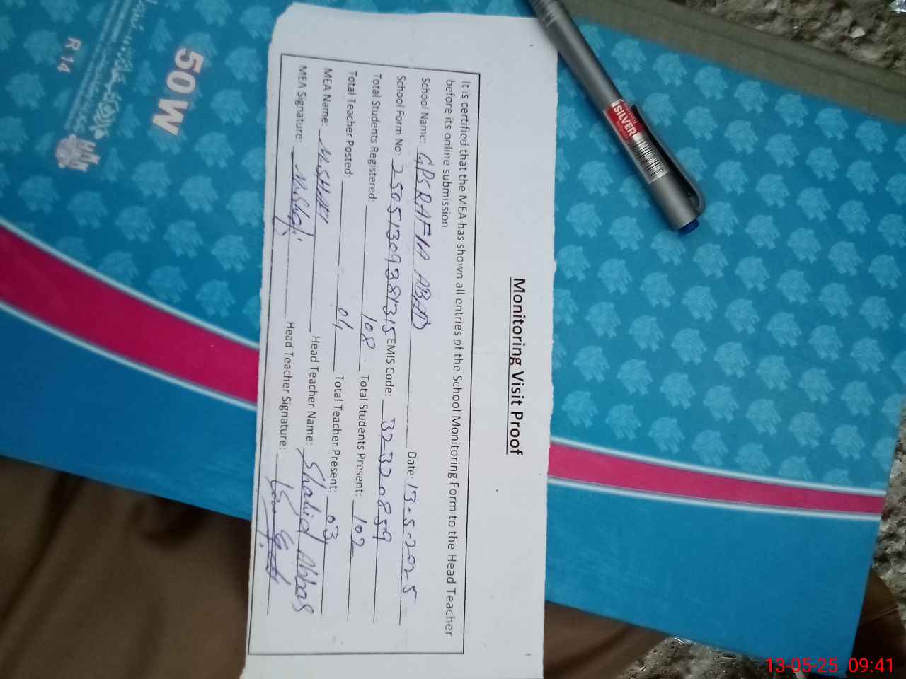 | Certified that this School was Inspected by the Undersigned MEA/DMO Today and the Information Stated Above is as Per Record. | |||||